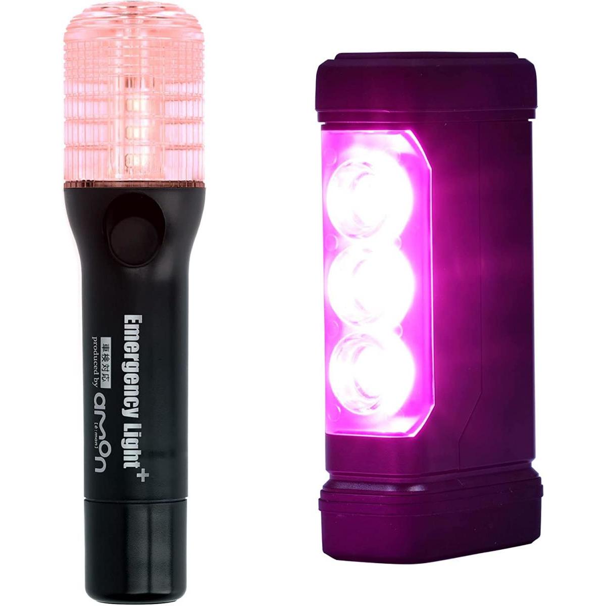 エーモン(amon) パープルセーバー&ライト付き非常信号灯セット 停止表示板 三角表示板 懐中電灯 道路交通法施行規則適合品 6906 6910