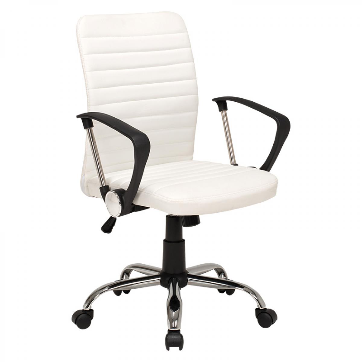 シンプルなデザインのオフィスチェア。PVC生地でお手入れが簡単。