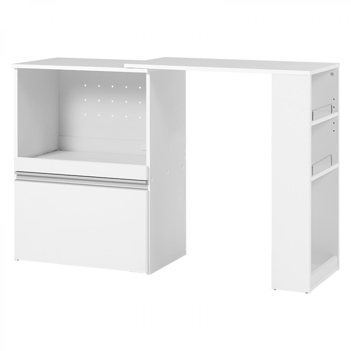 ●主材:プリント紙化粧パーティクルボード、天板・スライド棚:合成樹脂化粧パーティクルボード、取手:スチール
