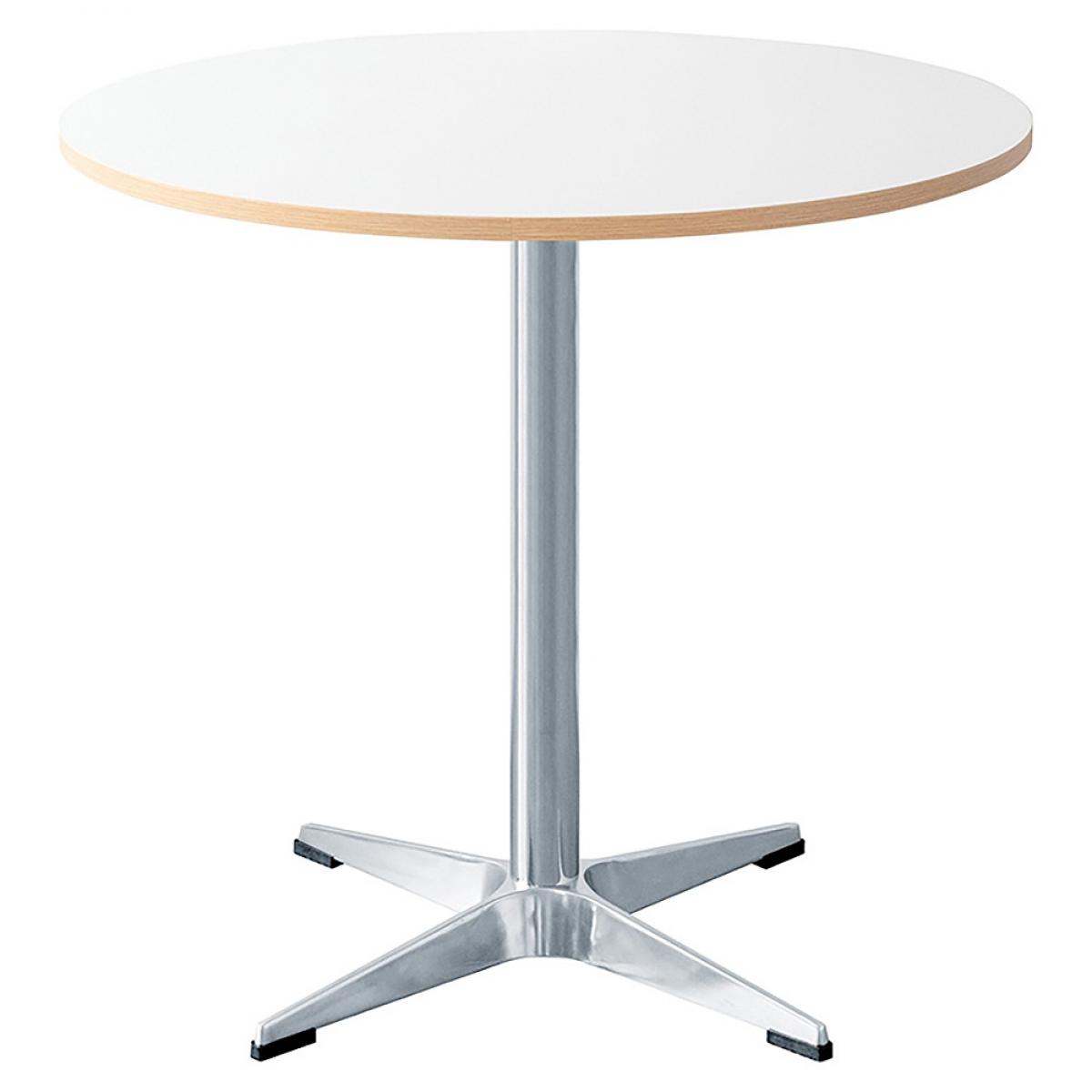側面カラーがアクセントになるラウンド天板と、光沢の美しいシルバー脚がお部屋に映えるカフェテーブル『Caredo(カレド)』。