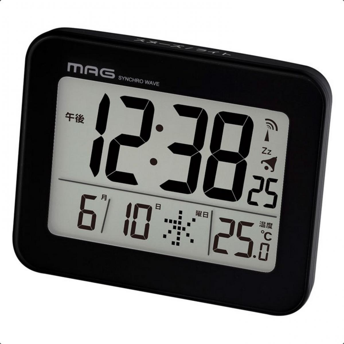 MAG マグ 電波目覚まし時計 ファルマン BK T-776BK-Z コンパクト 電波時計 電子音アラーム カレンダー表示 温度表示 スヌーズ