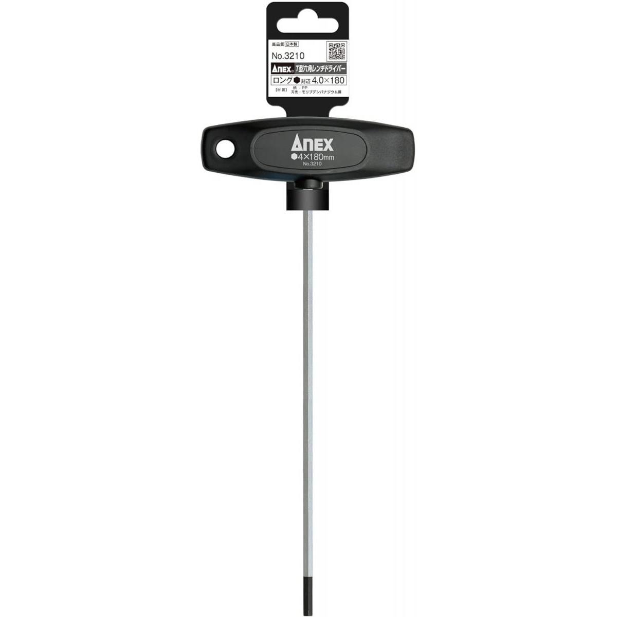 ANEX アネックス T型六角レンチドライバーロングタイプ H4.0×180 3210 ボルト ねじ回し 六角 ドライバー 日本製 工具