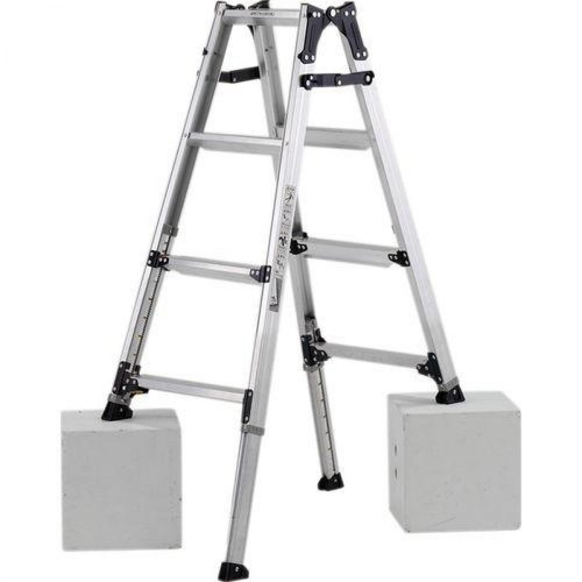 幅広踏ざんで軽量な伸縮脚付はしご兼用脚立