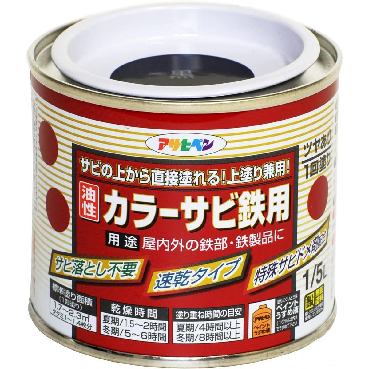 アサヒペン カラーサビ鉄用 黒 1/5L サビ落とし不要 油性 塗料 ペンキ 錆び 錆 錆用