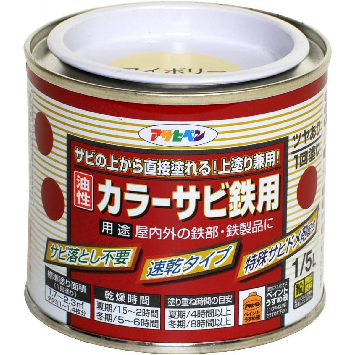 アサヒペン カラーサビ鉄用 アイボリー 1/5L サビ落とし不要 油性 塗料 ペンキ 錆び 錆 錆用