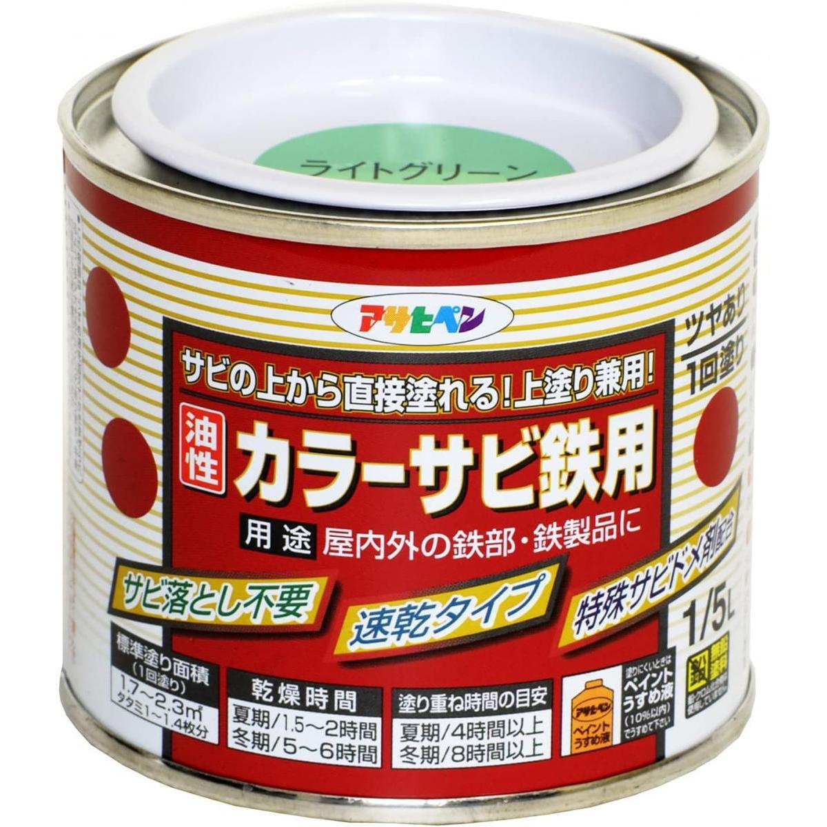 アサヒペン カラーサビ鉄用 ライトグリーン 1/5L サビ落とし不要 油性 塗料 ペンキ 錆び 錆 錆用
