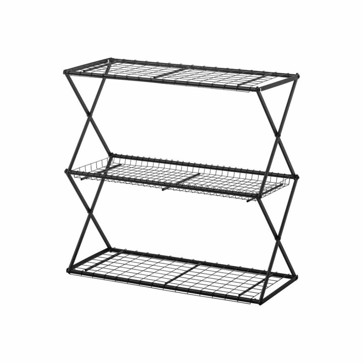 折りたたみ式の収納ラック。使用しない時はコンパクトにして収納可能です。