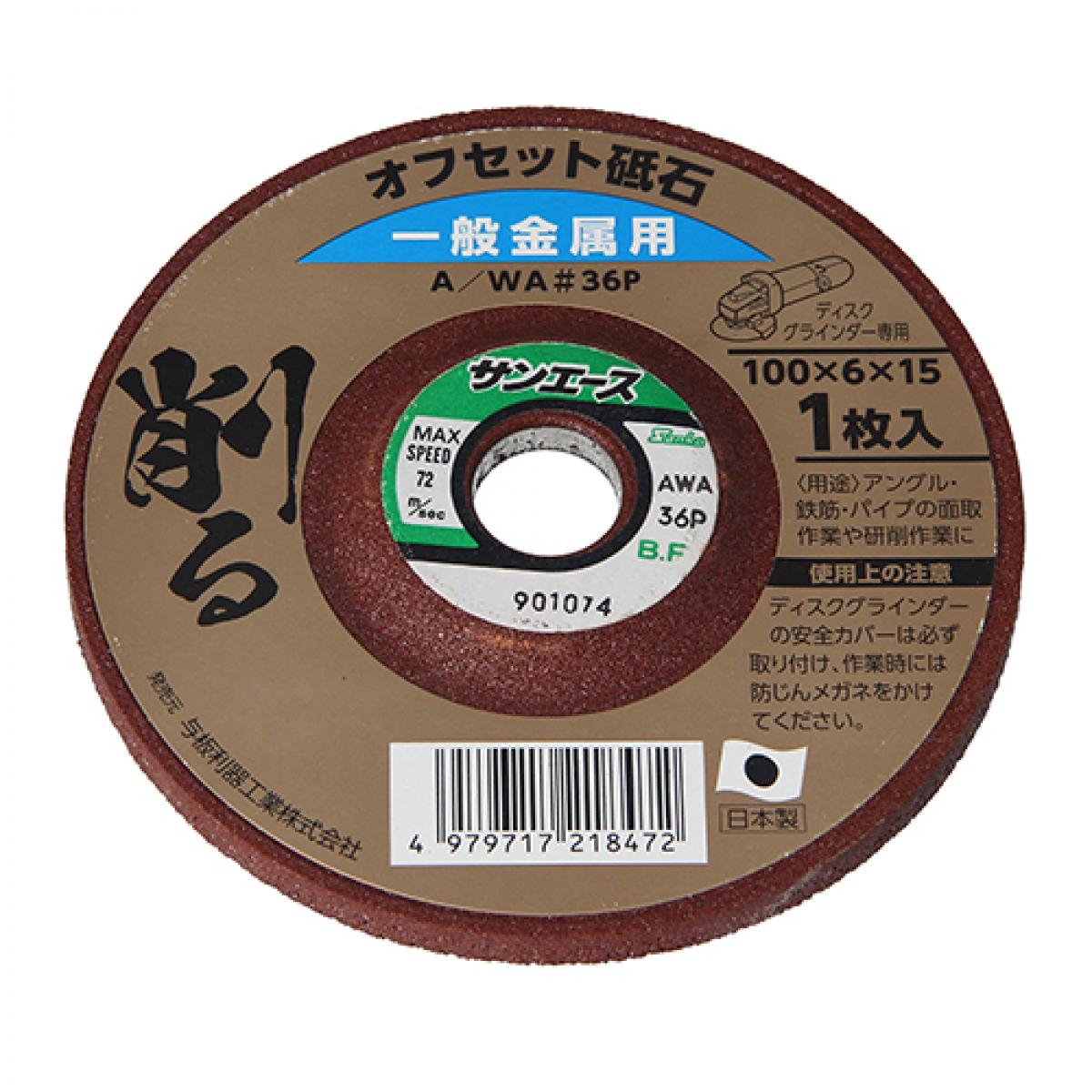 Yoita 削る オフセット砥石 一般金属用 A/WA36 100×6mm 1枚入り ディスクグラインダー専用 与板利器 金属 面取り 研削