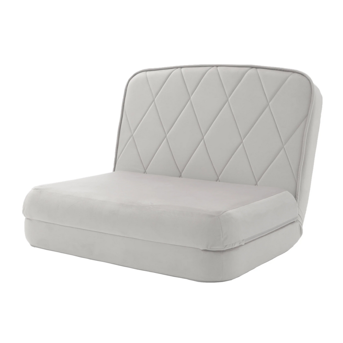 座面を折りたためば、コンパクトなソファスタイル。14段のリクライニング機能付きで好みの角度に調節可能。