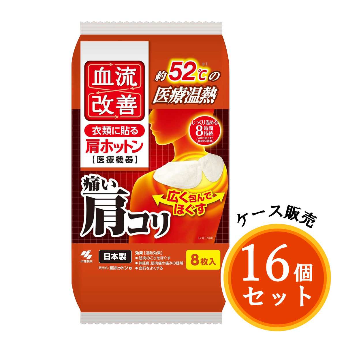【まとめ買い】小林製薬 血流改善 肩ホットン 8枚入×16セット(1ケース) 衣類に貼る約52°Cの医療温熱 一般医療機器 首 肩こり 温熱シート