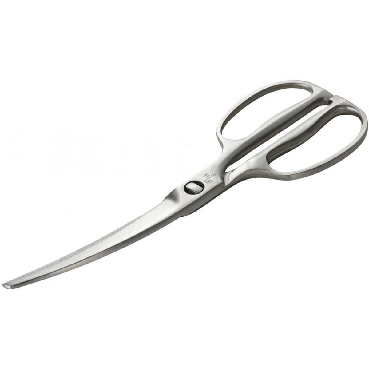 堅牢で洗いやすい鍛造オールステンレス製のカーブキッチン鋏
