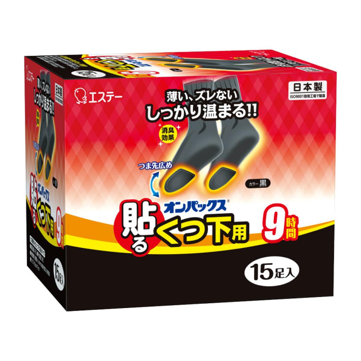 エステー オンパックス 貼るくつ下用 黒 15個入 靴用 中敷き 足用 9時間 日本製 消臭効果