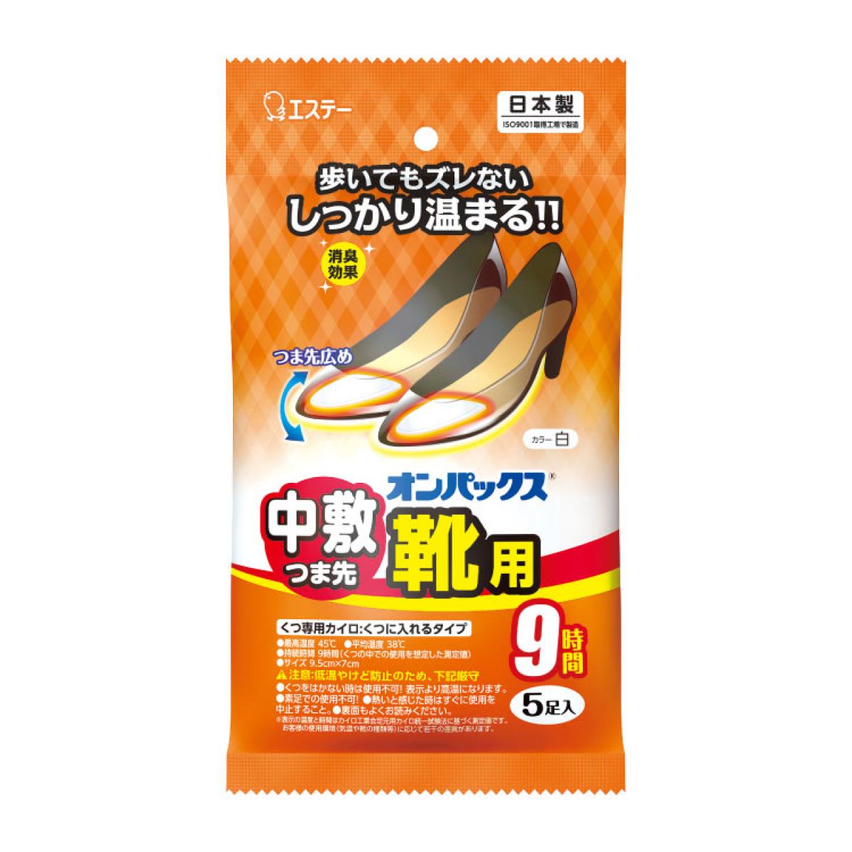 エステー オンパックス 中敷つま先靴用 白 5足入 靴用 中敷き 足用 9時間 日本製 消臭効果 カイロ 靴 爪先
