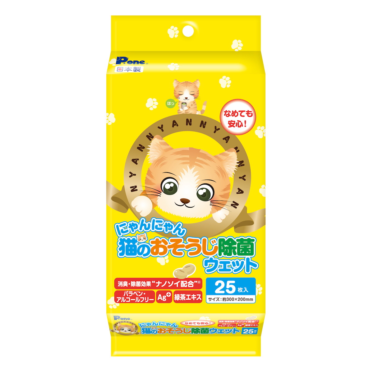 P.one(第一衛材) にゃんにゃん 猫のおそうじ 除菌ウェット 25枚 NWT-005 パラベン・アルコールフリー