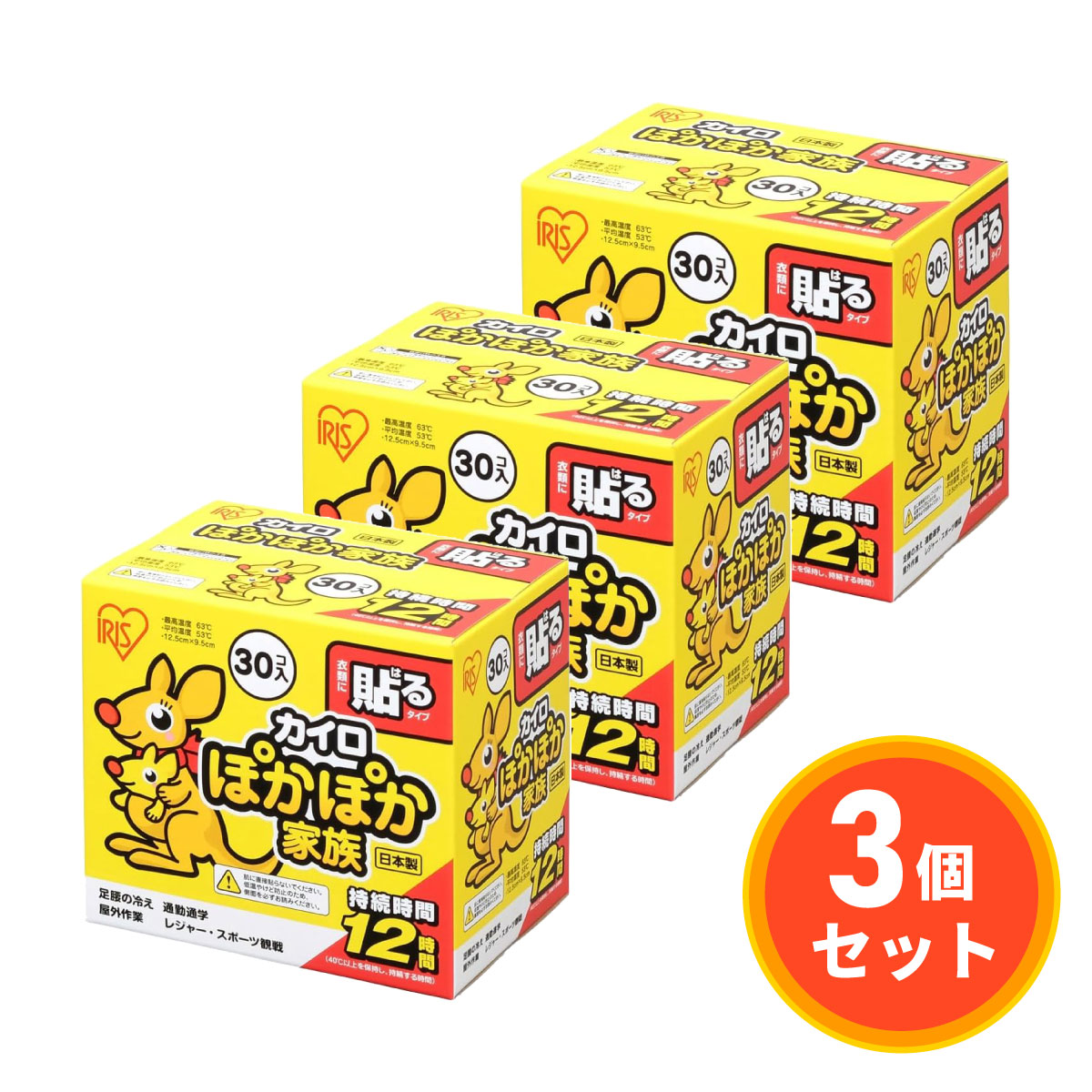 まとめ買い【在庫有・即納】アイリスオーヤマ ぽかぽか家族 貼るレギュラー 30個入 PKN-30HR×3セット 使い捨て カイロ 寒さ対策 冷え対策