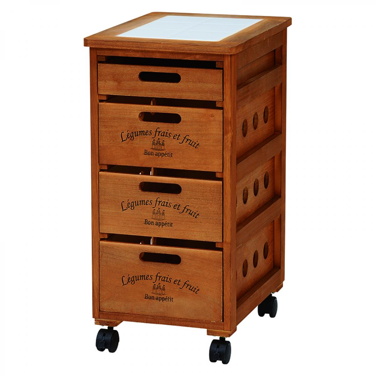 キャスター付きでラクラク!通気性のよい木製で野菜ストッカーにピッタリ。タイル天板は熱い鍋などを置くのにも便利。