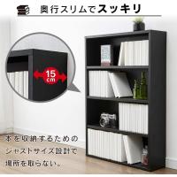 商品サイズ(cm):幅約59.9×奥行約15×高さ約84 耐荷重:全体/約35kg、天板・棚板/約7kg ◆スッキリしまえる、大容量の収納力文庫本なら約112冊、コミック(新書版)なら約160冊青年コミック(B6版)なら約140冊収納できます。本を収納するためのジャストサイズ設計。奥行き15cmと奥行きスリムで場所を取りません。◆たっぷりしまえる丈夫な造り全体耐荷重は約35kg、天板・棚板は約7kg板の厚さは1.6cmでしっかりとした造りです。◆コンパクトサイズだから置き場は自由自在リビング、デスクサイドはもちろんキッチン収納、トイレ収納などにもすすめです。※お客様組み立て品。'