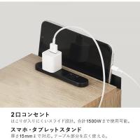 アイリスオーヤマ ナイトテーブル サイドテーブル 棚付き NTB-180R ライトナチュラル 2口コンセント スリム シンプル 充電 組立式 ベッドサイド