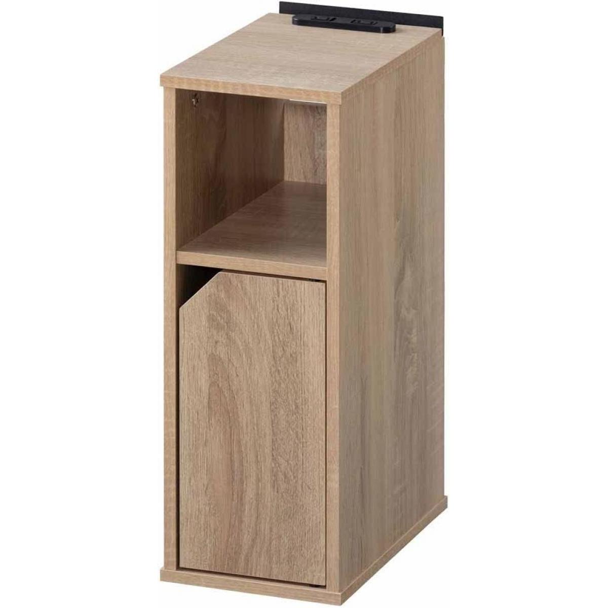 アイリスオーヤマ ナイトテーブル サイドテーブル 扉付き NTB-180T ライトナチュラル 2口コンセント スリム シンプル 充電 組立式 ベッドサイド