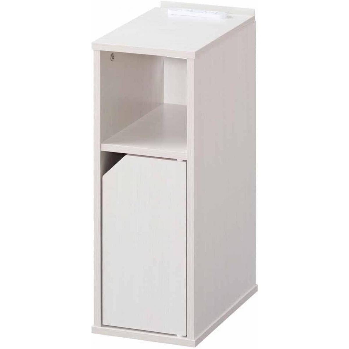 アイリスオーヤマ ナイトテーブル サイドテーブル 扉付き NTB-180T オフホワイト 2口コンセント スリム シンプル 充電 組立式 ベッドサイド