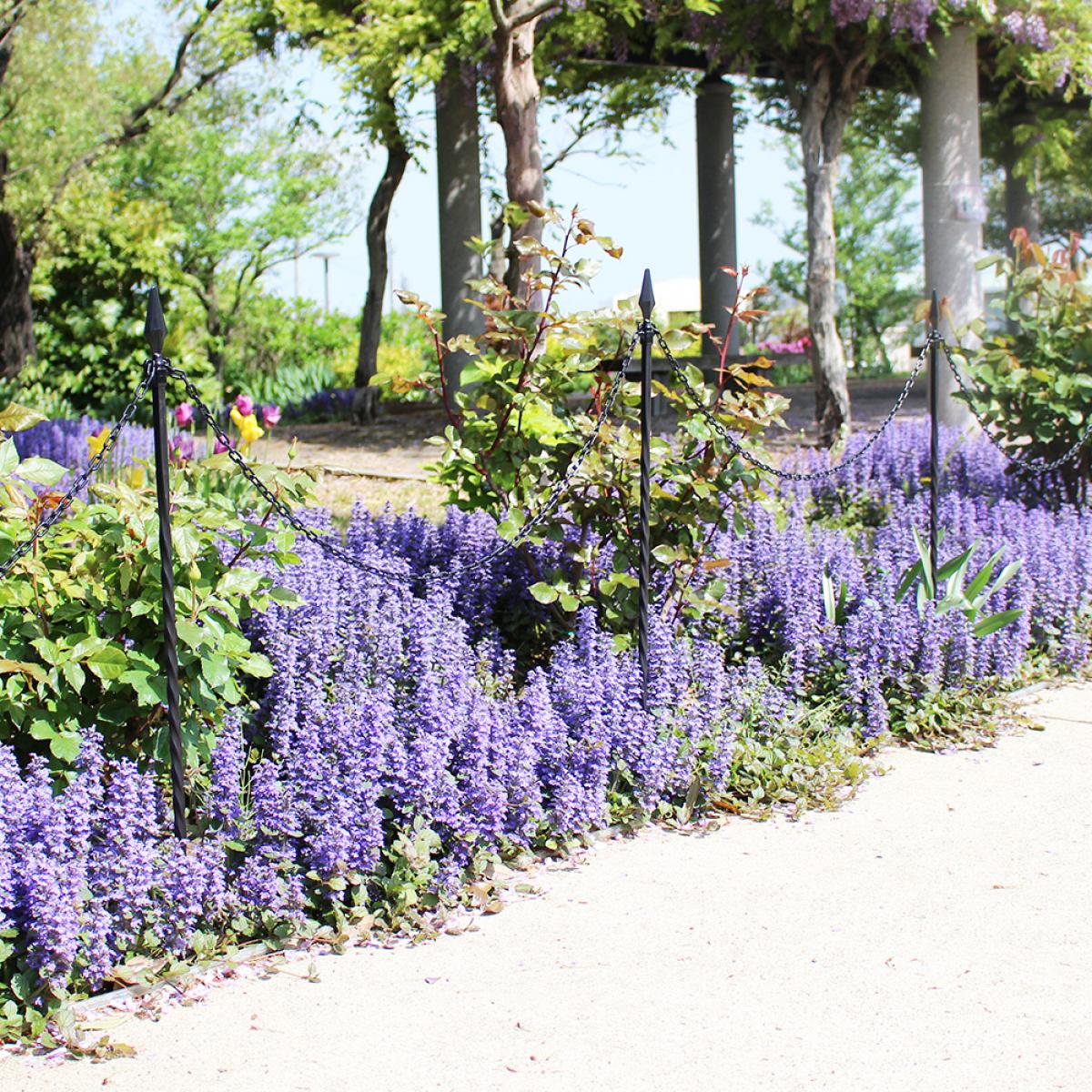 ガーデンチェーンポールはお庭の花壇や芝生、玄関までのアプローチから外れた場所などへの侵入を防止するためのチェーンと支柱のセットです!