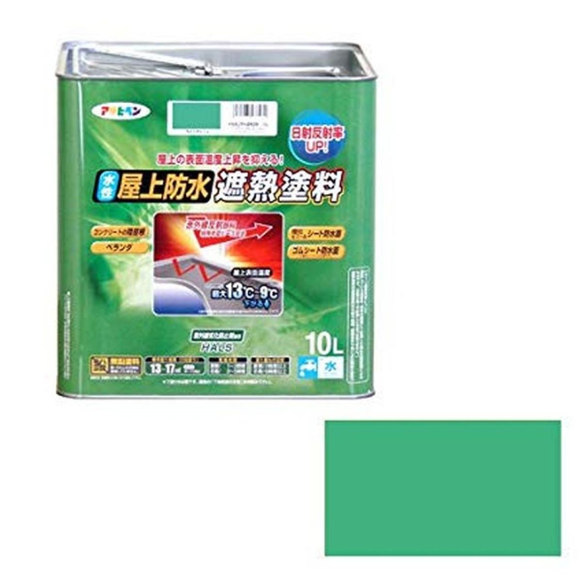 アサヒペン ペンキ 水性屋上防水遮熱塗料 ライトグリーン 10L