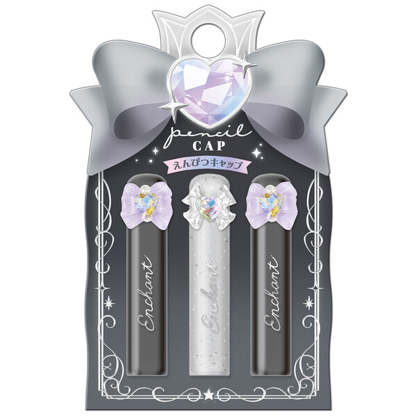 リボンマスコット付き鉛筆キャップ ブラックB 3本入 ハートストーン 銀箔押し キラキラ かわいい 入学準備 クーリア [01] 〔メール便対象〕