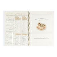 写真を貼れるアルバムページとバーチカルタイプの週間ダイアリー(1年間)に1歳までの成長の様子をまいにち記録できます。