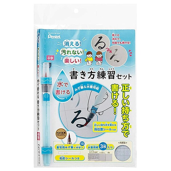 【セット内容】水書用みずふで・水書用紙3種各1枚・名前シール