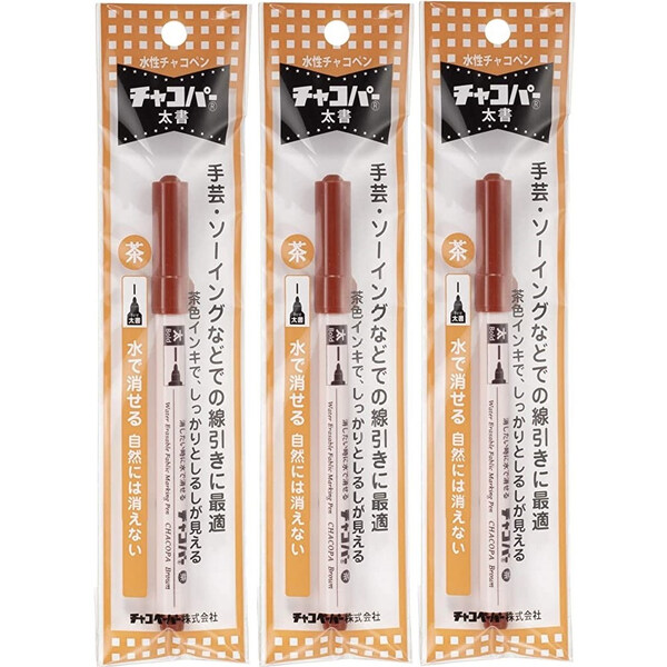 水性チャコペン チャコパー 太書 茶 3本セット 裁縫 印付け 趣味 便利 握りやすい [02] 〔メール便対象〕