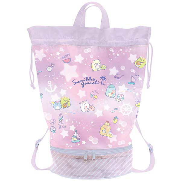 すみっコぐらし プールバッグ リュック ピンク 2ルーム 仕分け 収納 スイミング 水泳 ビーチサンダル サンエックス [01]