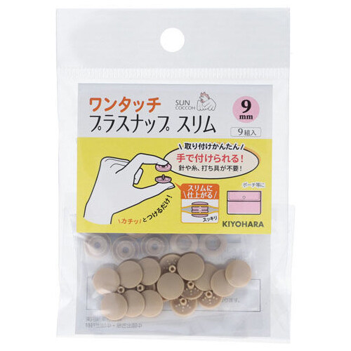 清原 サンコッコー ワンタッチプラスナップ スリム 9mm 9組入 ベージュ [01] 〔メール便対象〕