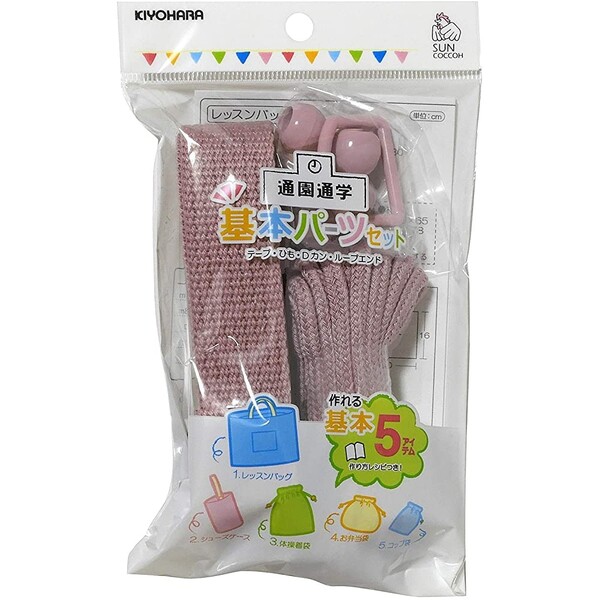 【セット内容】カラーテープ×1本/カラーひも×1本/Dカン×1個/ループエンド×5個/通園・通学の基本5アイテムの作り方レシピ