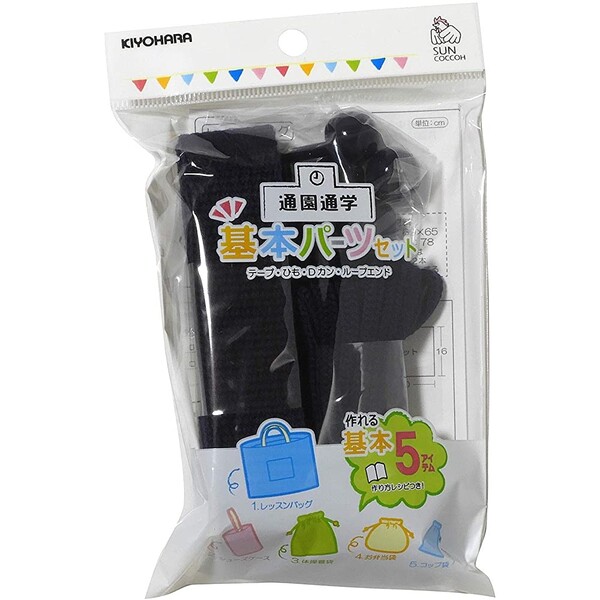 【セット内容】カラーテープ×1本/カラーひも×1本/Dカン×1個/ループエンド×5個/通園・通学の基本5アイテムの作り方レシピ