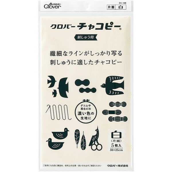 クロバー チャコピー 刺しゅう用 片面・白 30×25cm 5枚入 図案 しるし付け デニム 生地 裁縫道具 手芸 作品 手作り 趣味 日本製 [01] 〔メール便対象〕