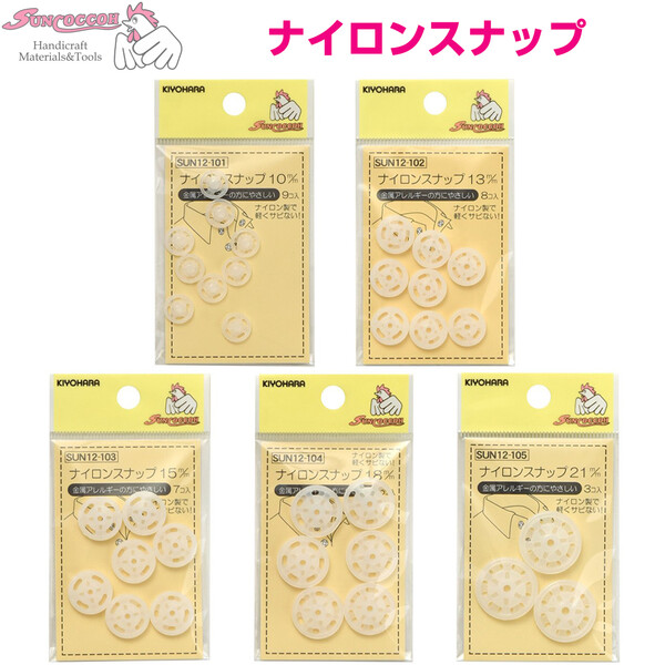 スナップボタン ナイロン製 10mm 13mm 15mm 18mm 21mm 清原 [02] 〔メール便対象〕