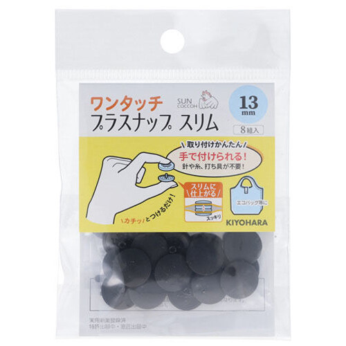 清原 サンコッコー ワンタッチプラスナップ スリム 13mm 8組入 ブラック [01] 〔メール便対象〕