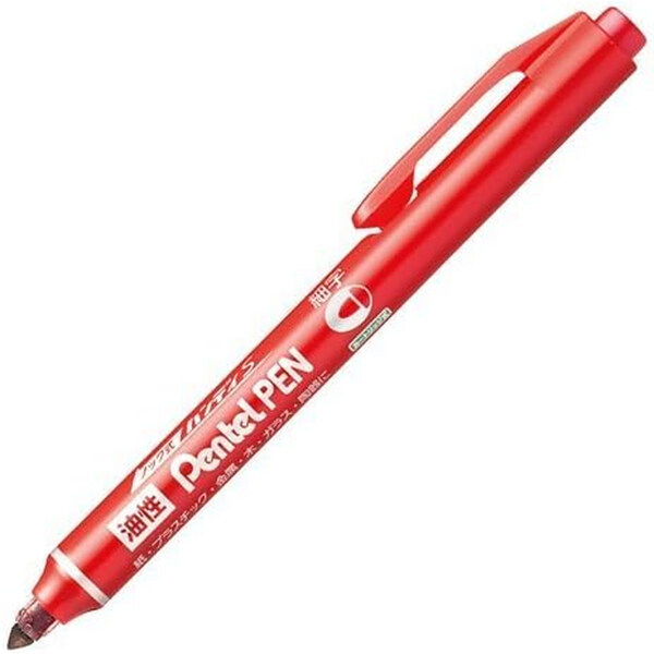 ぺんてる ノック式油性ペン ハンディS ペンてるペン 丸芯 細字 赤 NXS15-BP サインペン マーカー [02] 〔メール便対象〕