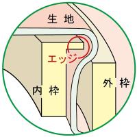 内枠についているエッジが生地をしっかりはさみ、張りを保ちます。