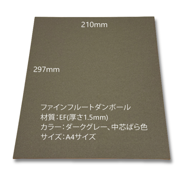 A4サイズ カラー 段ボール ダンボール ファインフルート ダークグレー× ばら 210x297mm 10枚 セット 厚さ1.5mm EF 工作用(送料無料・小型便にて配送)