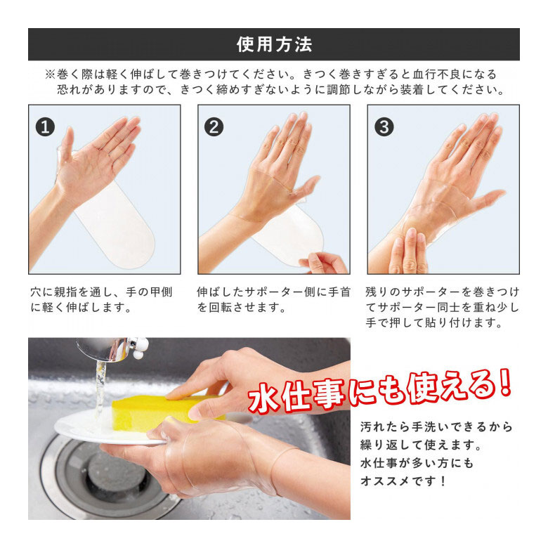 透明タイプだから目立ちにくく、装着したまま水仕事もOK。