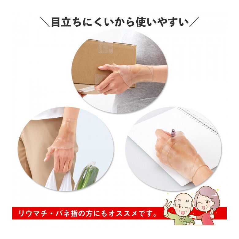 伸縮性のあるシリコン製。親指にはめて巻き付けるだけでピタッと密着し、気になる手首の痛みをしっかりサポートします。