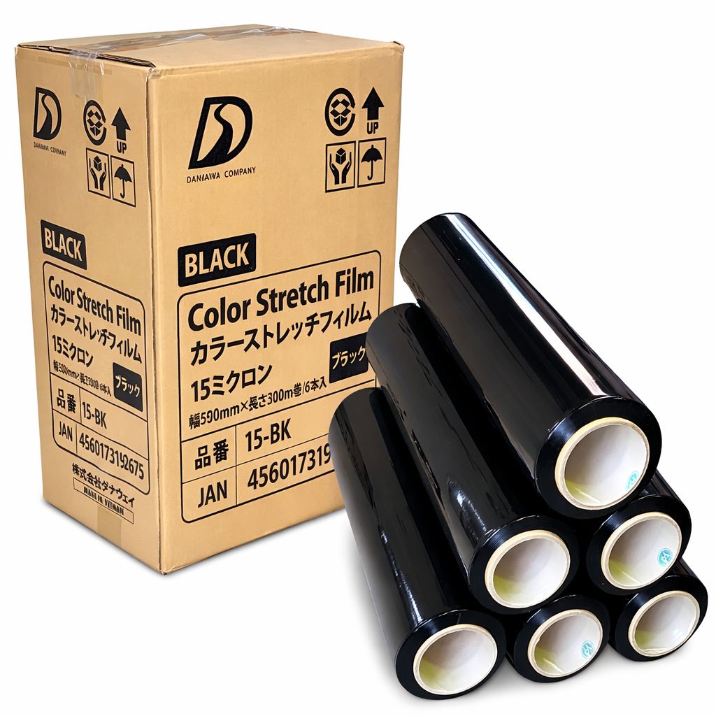 ダナウェイ カラーストレッチフィルム 幅500mm×長300m×厚15ミクロン 6巻 (黒) 《色分けで作業効率改善、誤出荷防止》