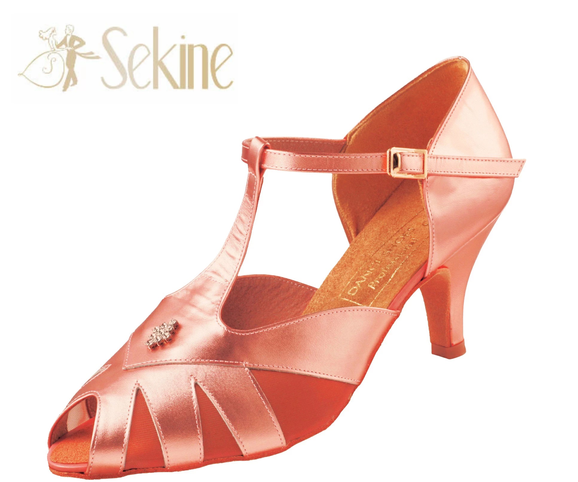 Sekine パーティ―シューズ PK679BN 21.5〜24.5cm ヒール 5.5cm 7cm バニオン幅 サティーナベージュ 外反母趾の方向け 社交ダンス 足に優しい 女性用 スタンダード ・ラテン兼用 パーティーシューズ 山羊革 メッシュ セキネ パーティー レッスンで履き替え不要【送料無料】