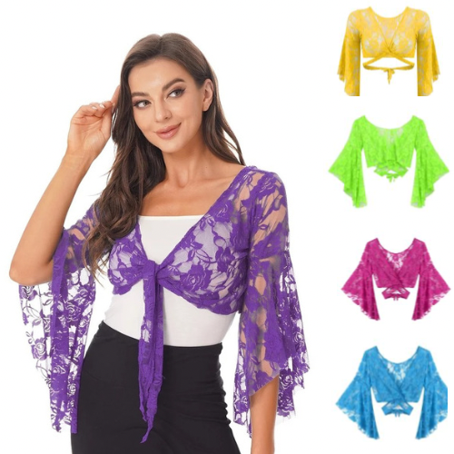 美しいベリーダンスを踊るために、デザインされたベリーダンスシャツ。深いVネックとフレアスリーブがセクシーさを演出し、女性らしいシルエットを作り出します。レースのデザインが華やかさを添え、ダンスパフォーマンスの際には目を引くこと間違いなしです。軽やかな素材で作られており、快適な着心地を実現。踊りながらの動きもスムーズで、思い切り躍動感のあるパフォーマンスが可能です。ベリーダンスを始めたい方やダンス愛好家の方にぴったりの一着です。セクシーでエレガントなスタイルを手に入れて、踊りの魅力をより引き立てましょう。