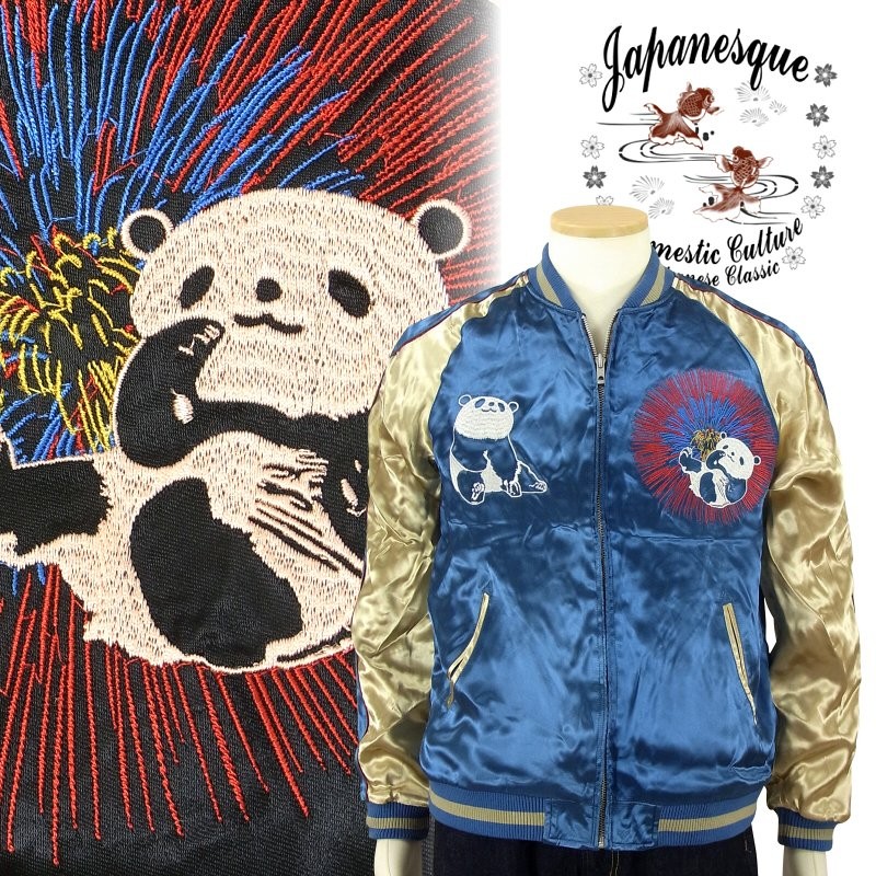 花火にパンダ刺繍スカジャン Japanesque【ジャパネスク】 3RSJ-039 和柄