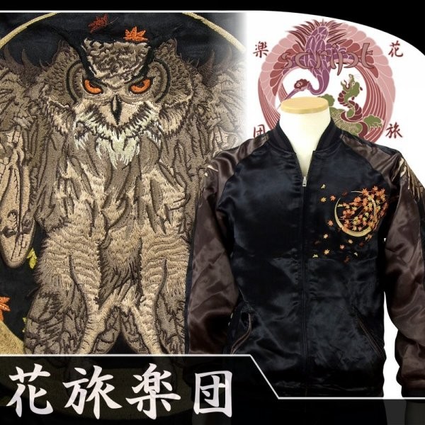 | ブランド:花旅楽団 | 商品名:紅葉と梟リバーシブルスカジャン |