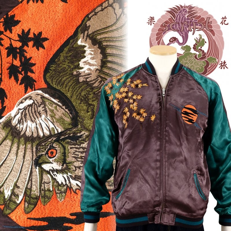 紅葉と梟刺繍スカジャン 花旅楽団 SSJ-030 和柄