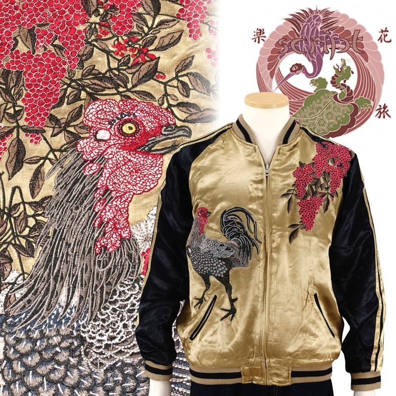 若冲の黒鶏刺繍スカジャン 花旅楽団 SSJ-031 和柄