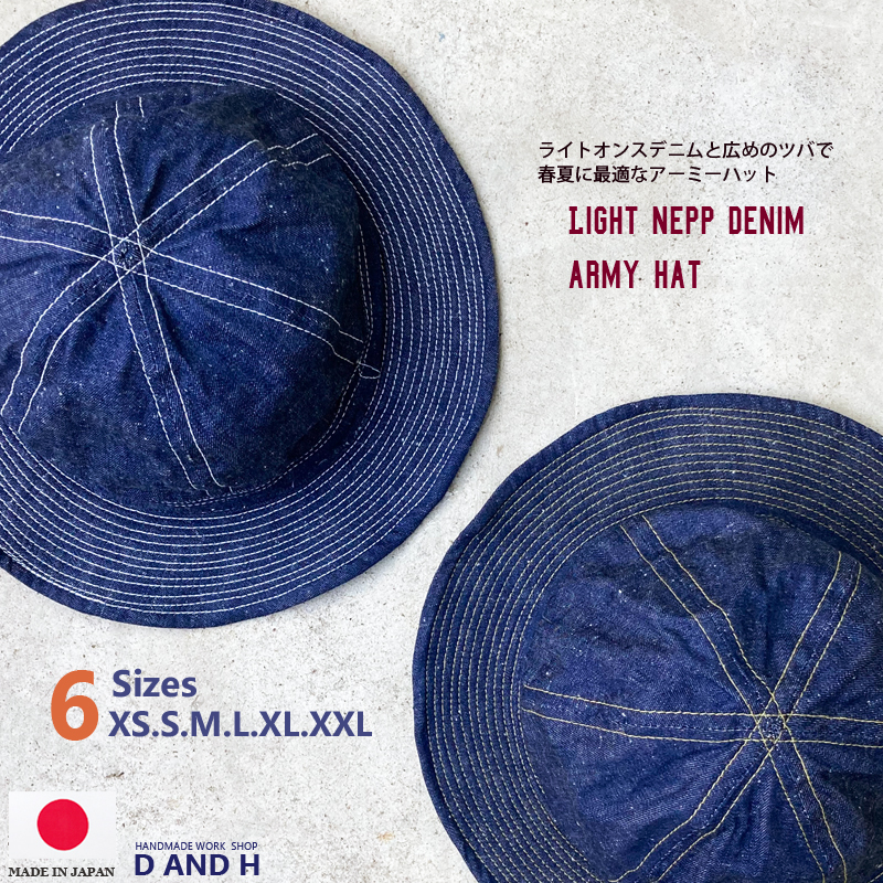 ネップライトデニムアーミーハット 9オンス 送料無料 大きいサイズ 日本製